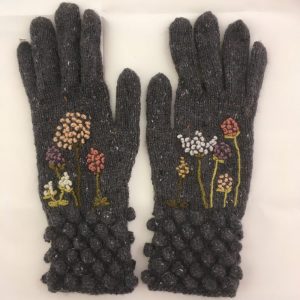 Stephanie Cooper Bobble Cuff Gloves – Charcoal Tweed/Alliums