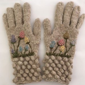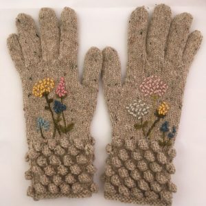 Stephanie Cooper Bobble Cuff Gloves – Biscuit Tweed/Alliums