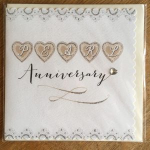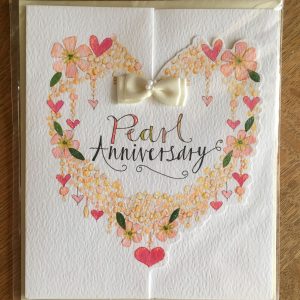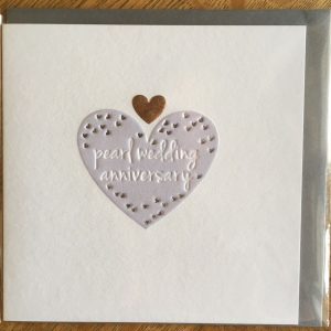 Rachel Ellen Pearl Anniversary Card – Die Cut Heart