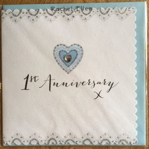 Rachel Ellen Happy First Anniversary Card – Die Cut Heart