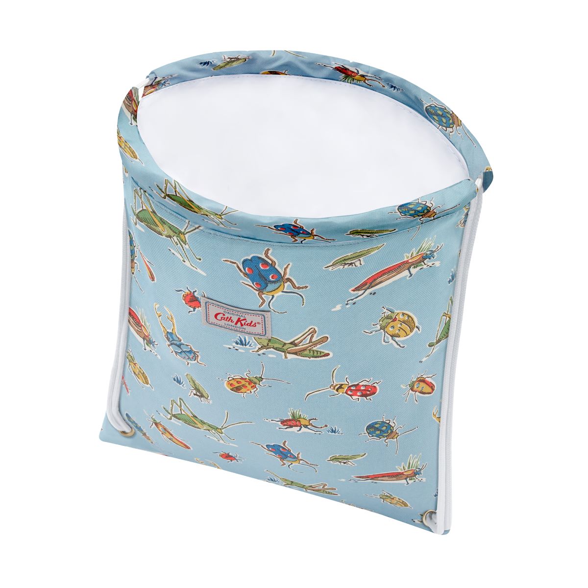 A simple drawstring kids bag for a multitude of uses, available in a multitude of colourful prints. Made from sturdy cotton fabric with a wipe clean lining