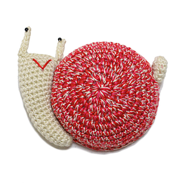 This fun, retractable tape measure is crocheted to make a really friendly snail.