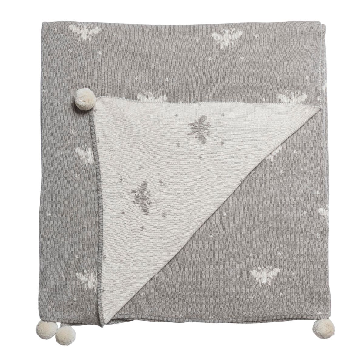 Made from 100% cotton this knitted throw is covered in buzzing bees on a grey background with a contrasting off white reverse. Perfect for styling up your bedroom, sofa or armchair and adding texture to your furnishings.