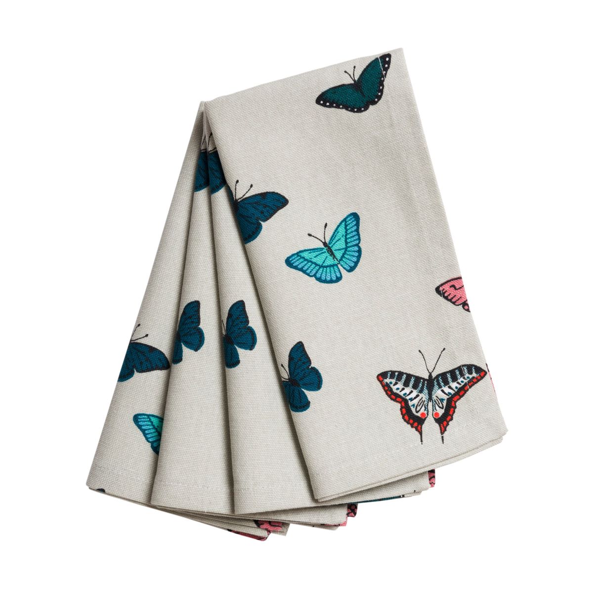 These cotton napkins come in a set of four and feature fluttering butterflies on a soft neutral background. Made from durable cotton, these napkins measure at 41cm x 41cm.
